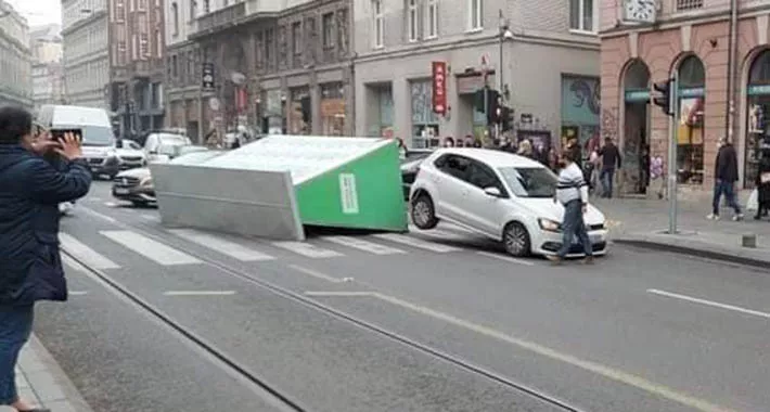 (Patria) - U Titovoj ulici u Sarajevu danas je došlo do nezgode u kojoj se prevrnula prikolica s reklamnim panoom kandidata Stranke demokratske akcije (SDA).