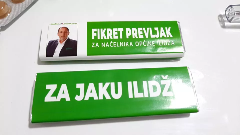 SARAJEVO, (Patria) - U predizbornoj kampanji političke stranke građanima su osim promotivnog materijala dijelili i neke sitne poklone. Pa su se tako dijelili upaljači, podmetači, ali i toplomjeri, lijekovi, brzi testovi za Covid 19, prehrambeni proizvodi. Za čokolade sa svojim likom na ambalaži odlučili su se neki od kandidata za načelnike kao što su Semir Efendić, Fikret Prevljak. Dok je na čokoladama koje su dijelili sa likom Semira Efendića bili navedeni deklaracija proizvođača kao i rok trajanja, u timu Fikreta Prevljaka skinuli su originalnu ambalažu a zamijenili je samo promotivnim materijalnom. S obzirom da su dijeljene građanima pitali smo inspekciju da li su te čokolade bile sigurne za upotrebu.