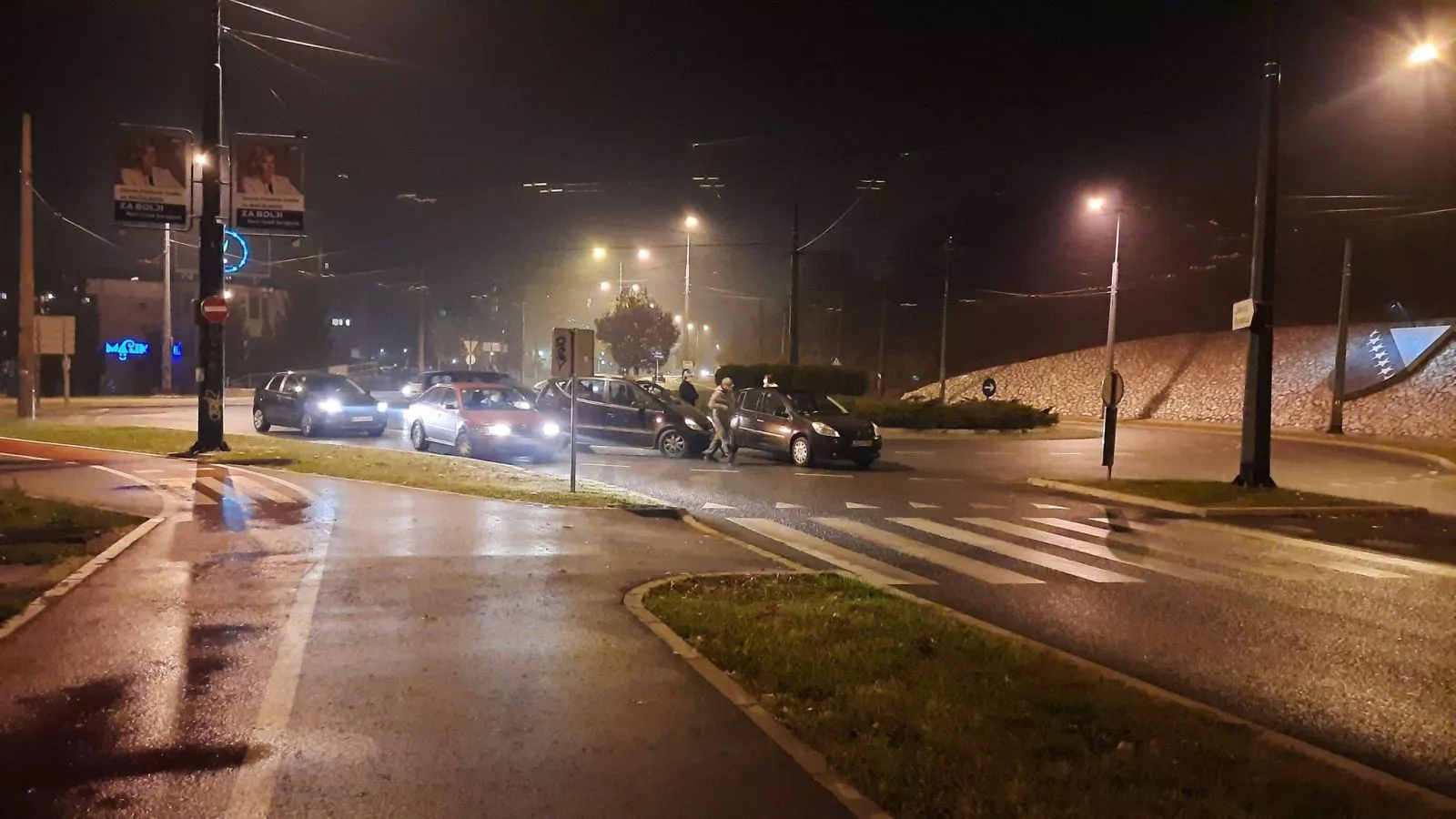 SARAJEVO, (Patria) - U naselju Dobrinja 5 večeras nešto prije 20 sati došlo je do sudara dva automobila na kružnom toku.