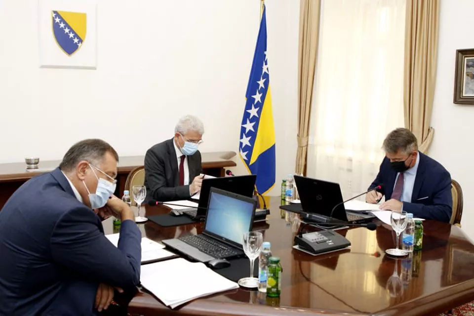 (Patria) - Predsjedništvo Bosne i Hercegovine usvojilo je na vanrednoj telefonskoj sjednici Informaciju o održavanju Samita Berlinskog procesa u Sofiji 10. novembra 2020.godine i odobrilo prihvatanje slijedećih dokumenata Deklaracije o Zajedničkom regionalnom tržištu, Akcijskog plana za razvoj Zajedničkog regionalnog tržišta 2021. – 2024., Zaključaka predsjedavajućeg sa sastanka ministara zdravstva u okviru Berlinskog procesa, Zaključaka predsjedavajućeg sa sastanka ministara unutrašnjih poslova u okviru Berlinskog procesa i Zaključaka ministarskog sastanka o integraciji Roma.