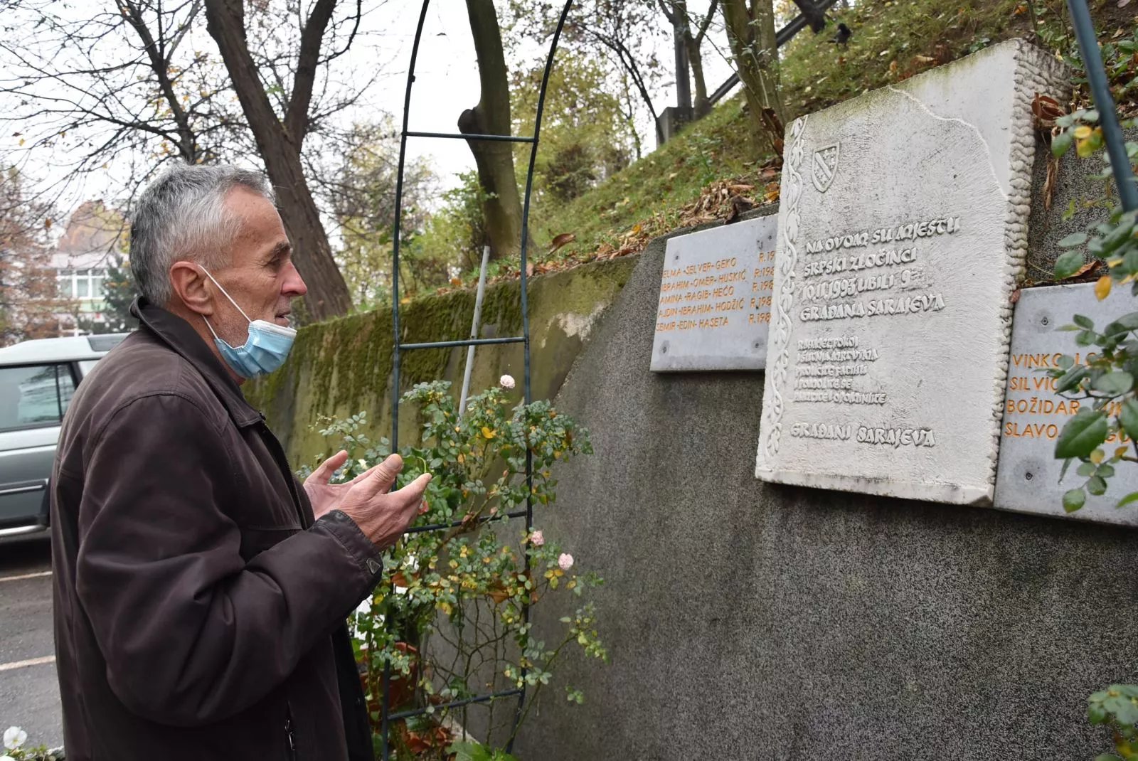Zajedno sa sinom i suprugom, proučio je fatihu i ostavio cvijeće ispred spomen-obilježja ubijenim.