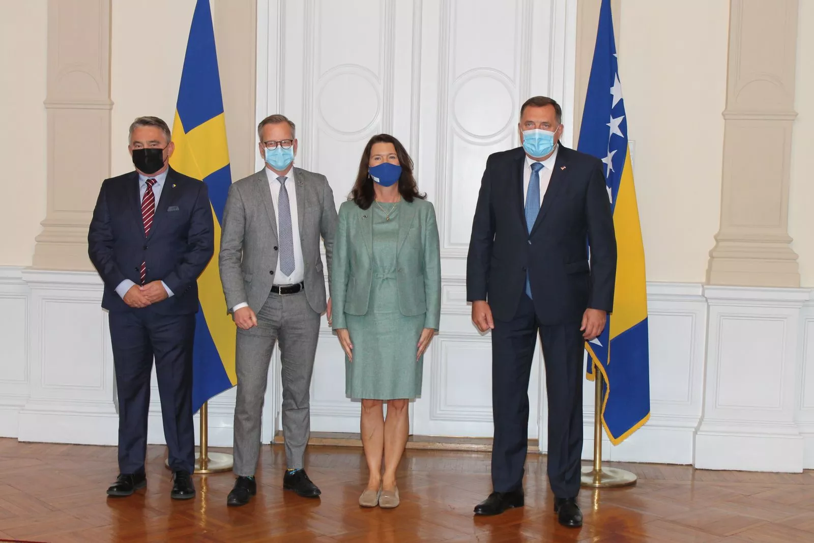 Članovi Predsjedništva BiH Milorad Dodik i Željko Komšić primili su ministricu vanjskih poslova Kraljevine Švedske Ann Linde, ministra unutrašnjih poslova Kraljevine Švedske Mikaela Damberga, te specijalnog izaslanika protiv organizovanog kriminala Hakana Jevrella