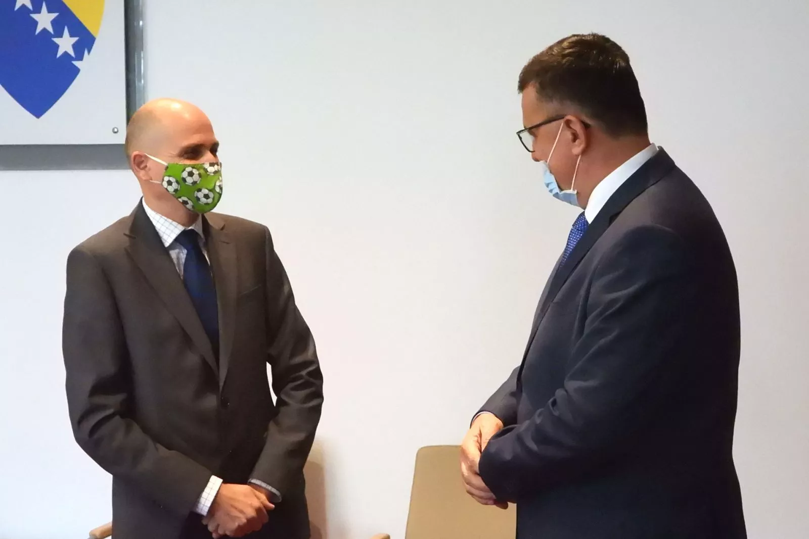 (Patria) - Predsjedavajući Vijeća ministara BiH Zoran Tegeltija razgovarao je danas u Sarajevu sa ambasadorom Mađarske u BiH Kristijanom Pošom. Na sastanku je razgovarano o evropskim integracijama, jačanju ekonomske bilateralne saradnje, te o aktivnostima koje se provode s ciljem suzbijanja posljedica pandemije Kovida - 19 u BiH.