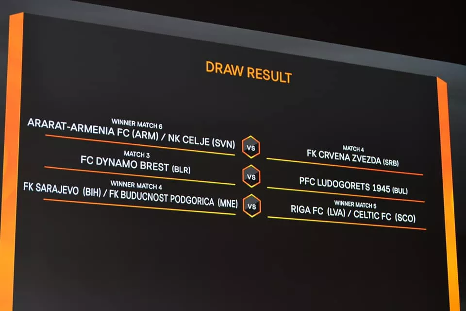 SARAJEVO, (Patria) - U slučaju prolaska u Play-off rundu UEFA Europa League fudbaleri Sarajeva igrat će na domaćem terenu, a protivnik će biti pobjednik duela Riga FC - Celtic FC.