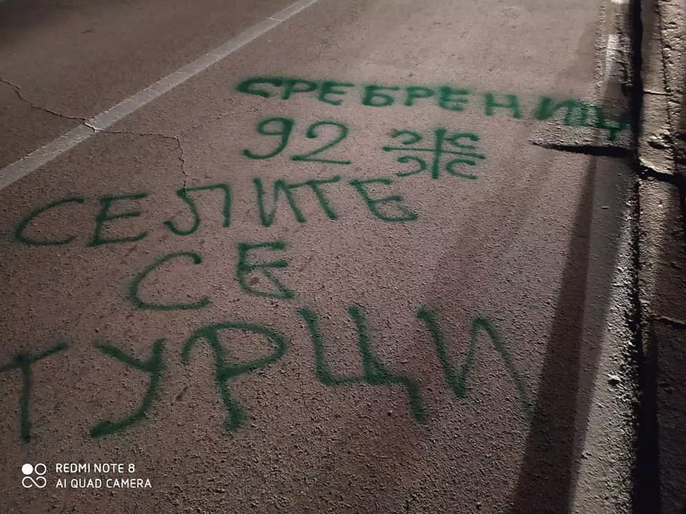 Ponovo su ispisane uvredljive parole i prijetnje „Selite se Turci“ i aludiranje na Srebrenicu gdje je počinjen najveći genocid na tlu Evrope nakon Drugog svjetskog rata.