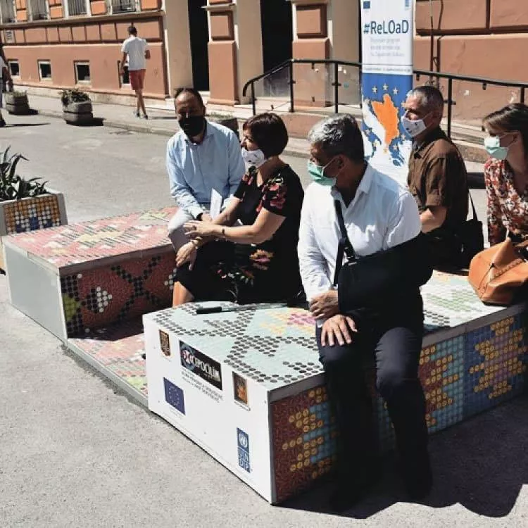 SARAJEVO, (Patria) - U Gimnazijskoj ulici je svečano postavljena ČEPOklupa, umjetnička instalacija, koja je ujedno i mobilijar, ukrašena mozaikom od pvc čepova, sa šarom bosanskog ćilima.