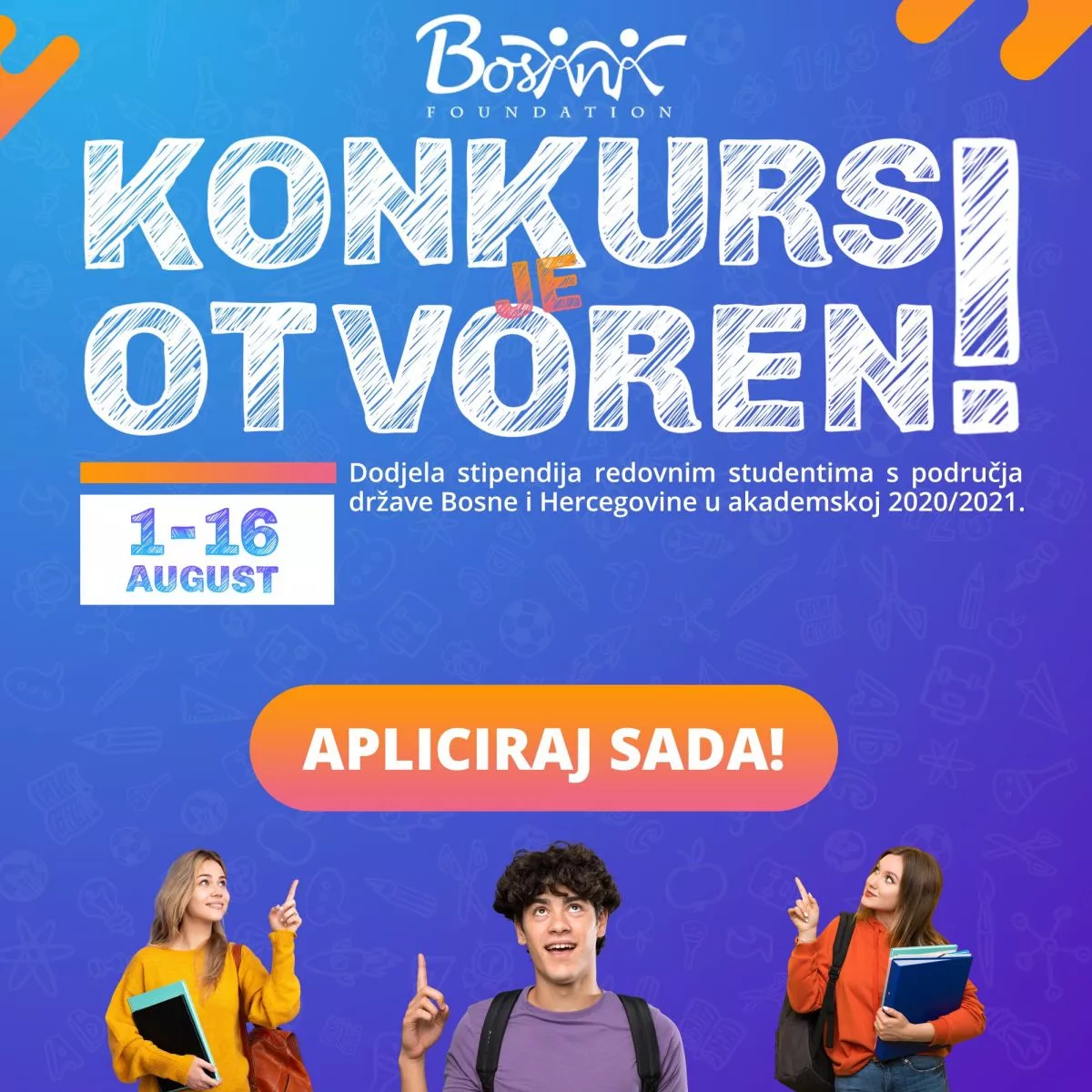 "U moru negativnih vijesti, pomozite nam da širimo prilike za bolje sutra. Želja nam je da što veći broj studenata aplicira za stipendije. Aplicirati mogu svi studenti u BiH", poručuju iz Fondacije.