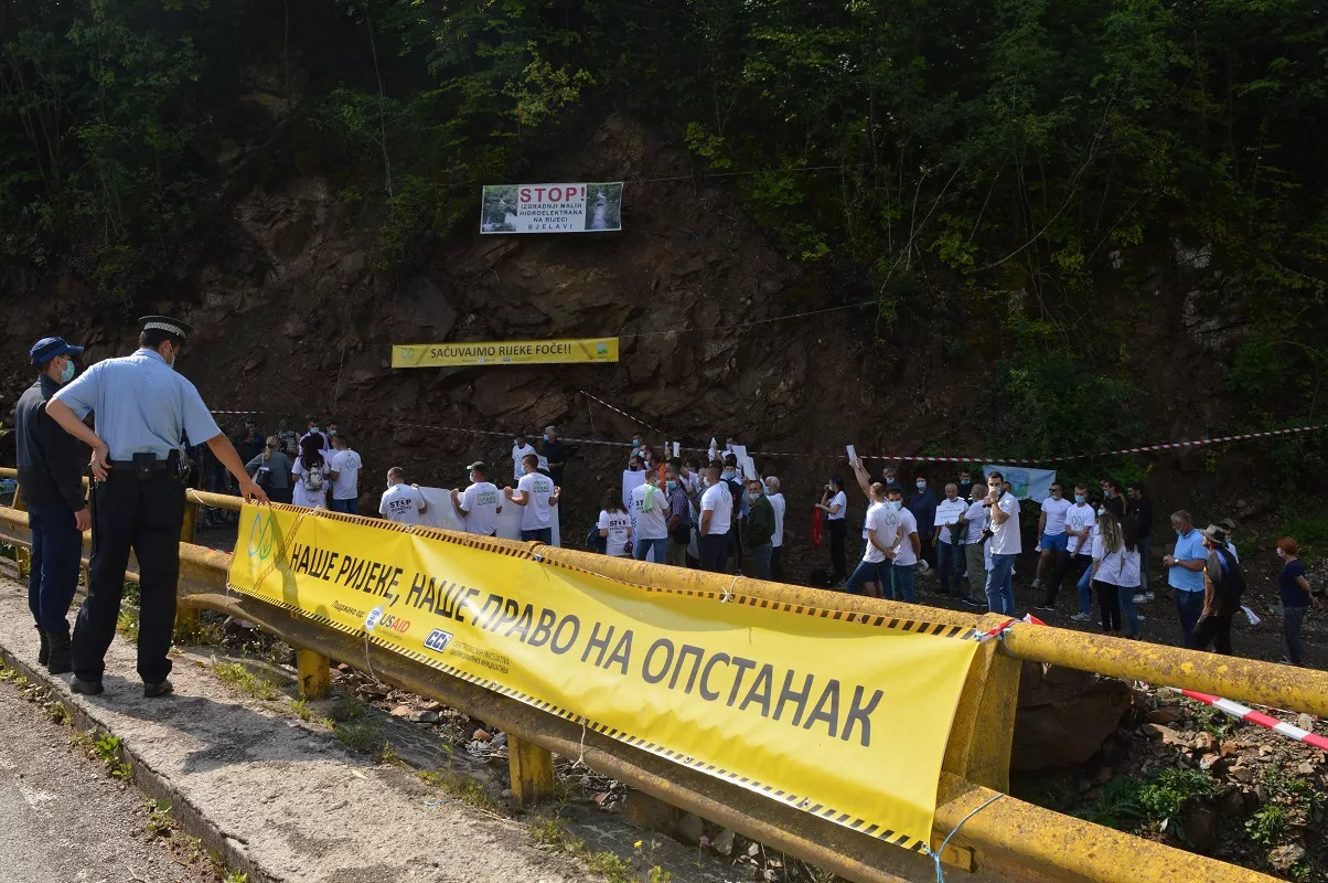 (Patria) - Građani Foče, okupljeni u Udruženje građana „Bjelava“ Foča i neformalnu grupu Sačuvajmo rijeke Foče, organizovali su danas proteste kako bi ukazali na veliko nezadovoljstvo zbog aktuelnih i planiranih radova na izgradnji većeg broja mHE na području opštine Foča. Posebno skreću pažnju na brojne propuste prilikom izvođenja radova na rijekama Bjelava, Mala i Velika Bjelava i nedostatak reakcije nadležnih institucija.