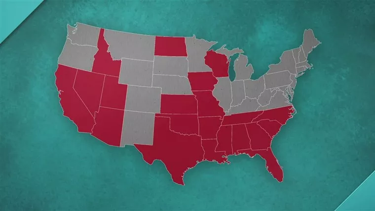 Države u 'crvenoj zoni' – Alabama, Arizona, Arkansas, California, Florida, Georgia, Idaho, Iowa, Kansas, Louisiana, Mississippi, Missouri, Nevada, North Carolina, North Dakota, Oklahoma, South Carolina, Tennessee, Texas, Utah i Wisconsin, u prošloj sedmici su pojedinačno zabilježile više od 100 novih slučajeva na 100.000 ljudi, izvijestio je list New York Times.