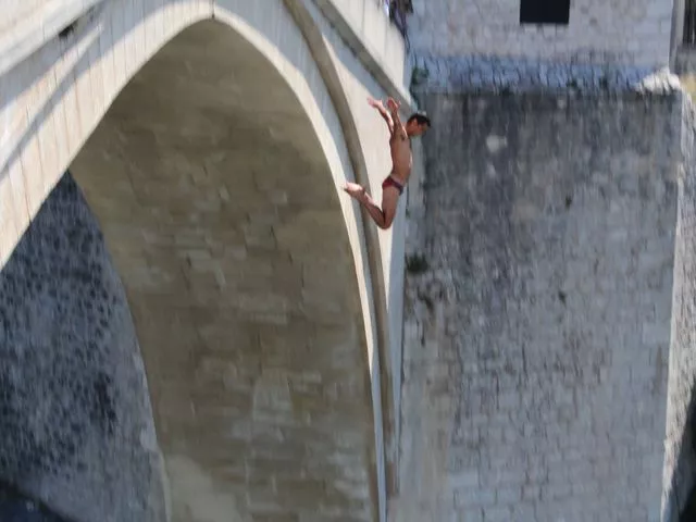 SARAJEVO, (Patria) - Višestruki šampion skokova sa Starog mosta u disciplini ‘na noge’ i član Kluba skakača u vodu “Mostari”, Igor Kazić, izveo je u subotu, u 11 sati i 7 minuta, skok sa Starog mosta u Mostaru, bez aplauza, posvećen žrtvama genocida u Srebrenici, prenosi StarMo.