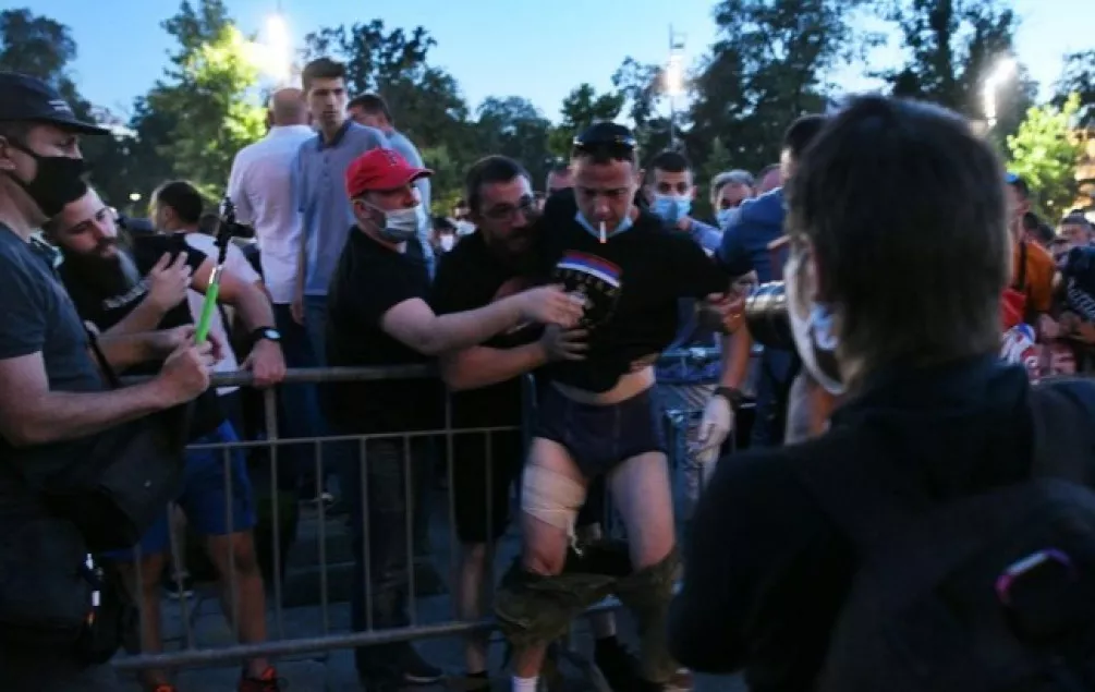 Također, na stepenice Skupštine maskirane osobe su bacale topovske udare i druga pirotehnička sredstva. „Blic“ javlja da je zabilježena i tuča između pripadnika desničarskih grupa "Levijatan" i "Obraz".