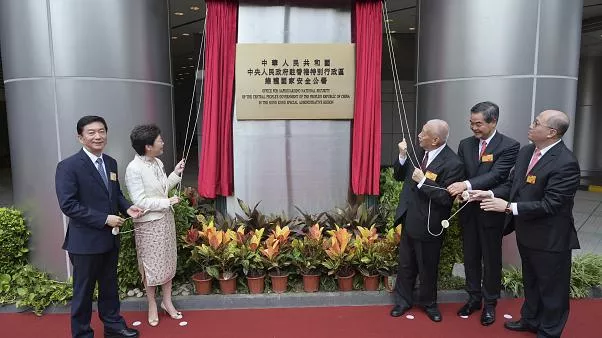 Svečanoj ceremoniji otvaranja ureda u bivšem hotelu Metropark prisustvovali su novoimenovani šef ureda Zheng Yanxiong, čelnica vlade Hong Konga Carrie Lam i Luo Huining, čelnik kineskog Ureda za vezu.