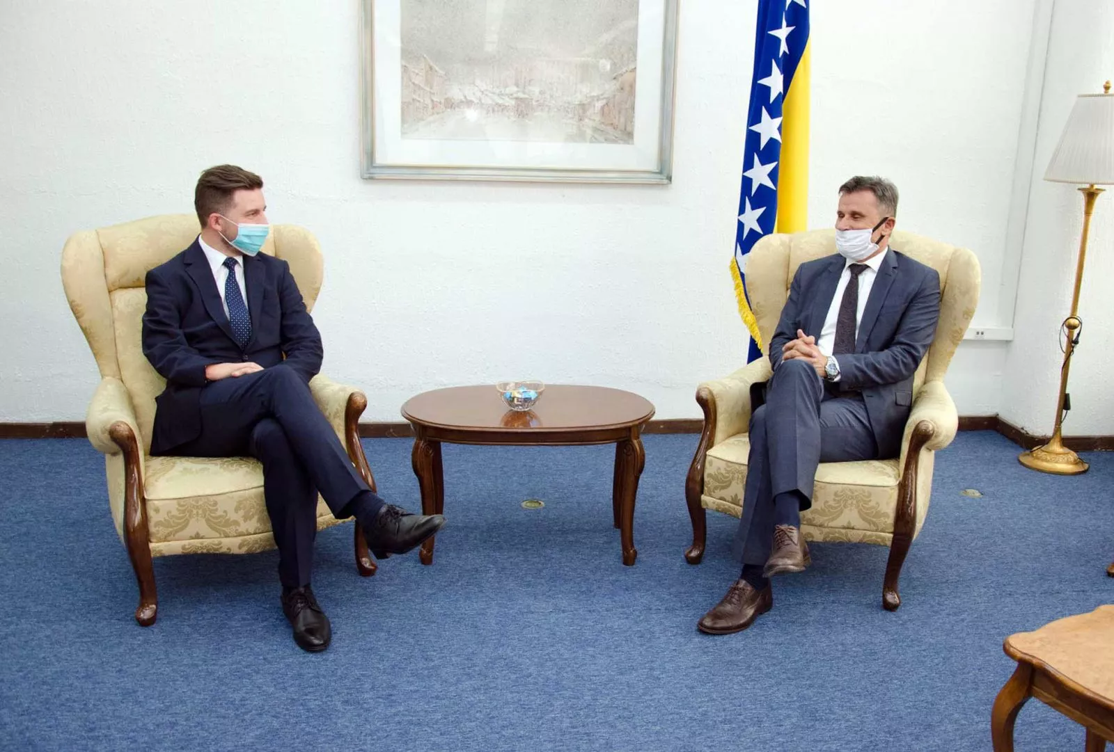 SARAJEVO, (Patria) - Premijer Federacije BiH Fadil Novalić primio je danas, u sjedištu Vlade FBiH u Sarajevu, novimenovanog ambasadora Bosne i Hercegovine u Republici Turskoj Adisa Alagića.