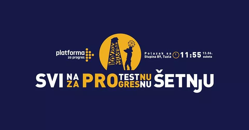 "Odlukom Predsjedništva Platforme za progres održavanje mirne protestne šetnje u Tuzli će biti simbolično. Planirana mirna protestna šetnja zakazana za 13.06.2020. godine u Tuzli, neće biti održana u punom kapacitetu, radi nepovoljne epidemiološke situacije u ovom gradu, koja je iz dana u dan lošija. Izuzetno nam je bitno zdravlje građana, ali i odgovornost koju imamo prema svima. Šetnja će biti organizovana sa maksimalno stotinu građanki i građana Tuzle, koji su dužni nositi zaštitne maske i poštovati fizičku distancu. Molimo starije osobe i one koji pripadaju rizičnim skupinama da ne dolaze na mirnu protestnu šetnju. Također, apelujemo na sve građanke i građane iz drugih gradova da ne dolaze u Tuzlu, te da nas prate uživo na Facebooku i na taj način pruže podršku", kaže se u Facebook poruci.
