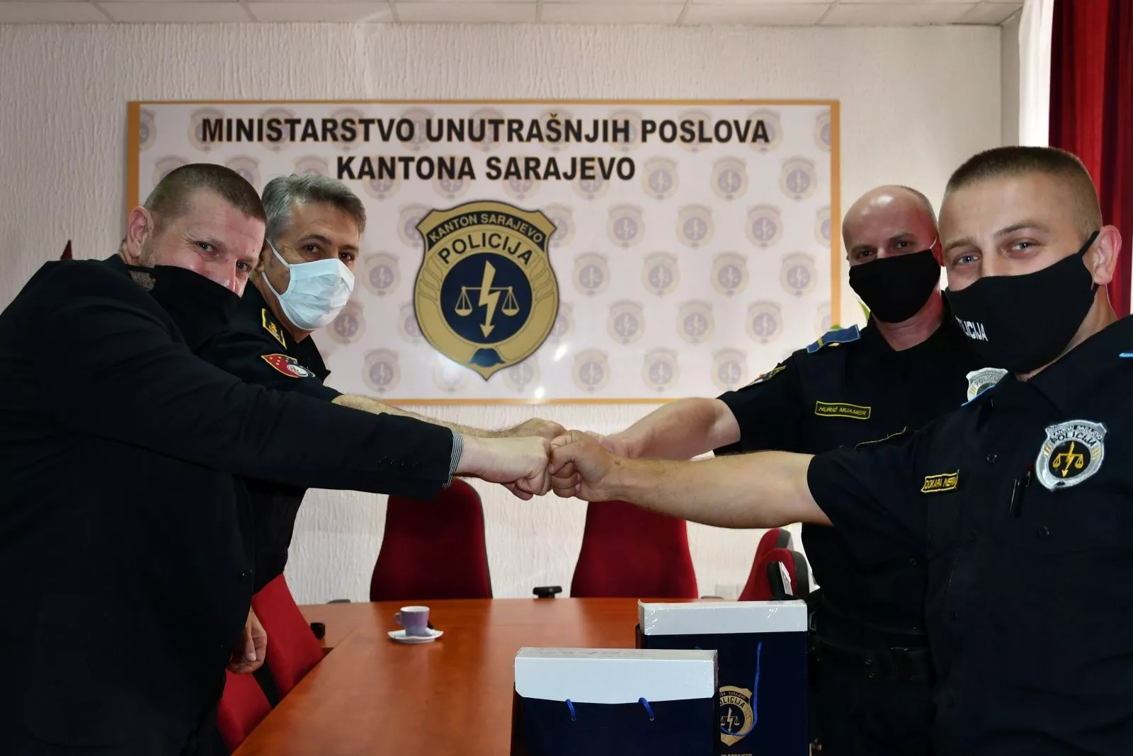 SARAJEVO, (Patria) - Danas su u prostorijama MUP-a Kantona Sarajevo ministar Ismir Jusko i policijski komesar Nusret Selimović primili i sa istima se zadržali u dužem, ugodnom razgovoru policijske službenike Četvrte PU Nermina Dokaru i Muamera Hurića. Povod prijemu je bila jučerašnja intervencija policijskih službenika u stanu na Alipašinom polju, kada je policijski službenik Dokara Nermin, uz asistenciju kolege Hurića, na petom spratu zgrade preko balkona prešao iz jednog u drugi stan i pružio pomoć djevojčici koja je određeno vrijeme, bez nadzora, boravila sama u stanu, te je plačem i pozivima upomoć skrenula pažnju građana koji su o tome obavijestili policiju.