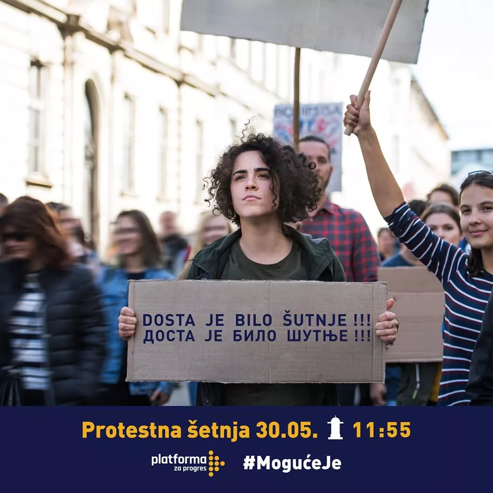 "Nezadovoljni radom aktuelne vlasti, prolongiranjem izbora, korupcijom i aferama, želimo mirnim putem glasno poručiti: Dosta je bilo šutnje! Kroz inicijative, prijedloge, saopćenja za javnost do sada smo ukazivali na mnoge probleme u našoj državi i moguća rješenja u čijem kreiranju su učestvovali svi organi Platforme kao i eksperti koji nisu registrovani članovi Platforme. Po svemu sudeći, bezuspješno. Iz tog razloga smo odlučili mirnom protestnom šetnjom poručiti da je moguće imati stabilnu budućnost bez afera!