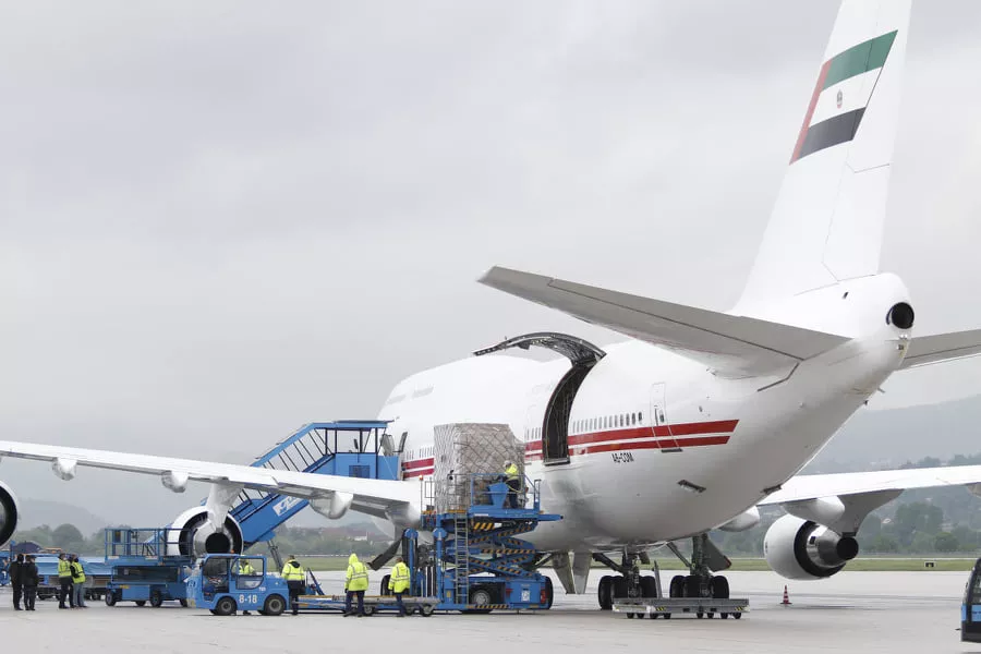 SARAJEVO, (Patria) - Na Međunarodni aerodrom Sarajevo danas je sletjetio avion sa humanitarnom pomoći iz Ujedinjenih Arapskih Emirata u kojem se nalazi 40 respiratora i 100.000 testova za Covid 19.