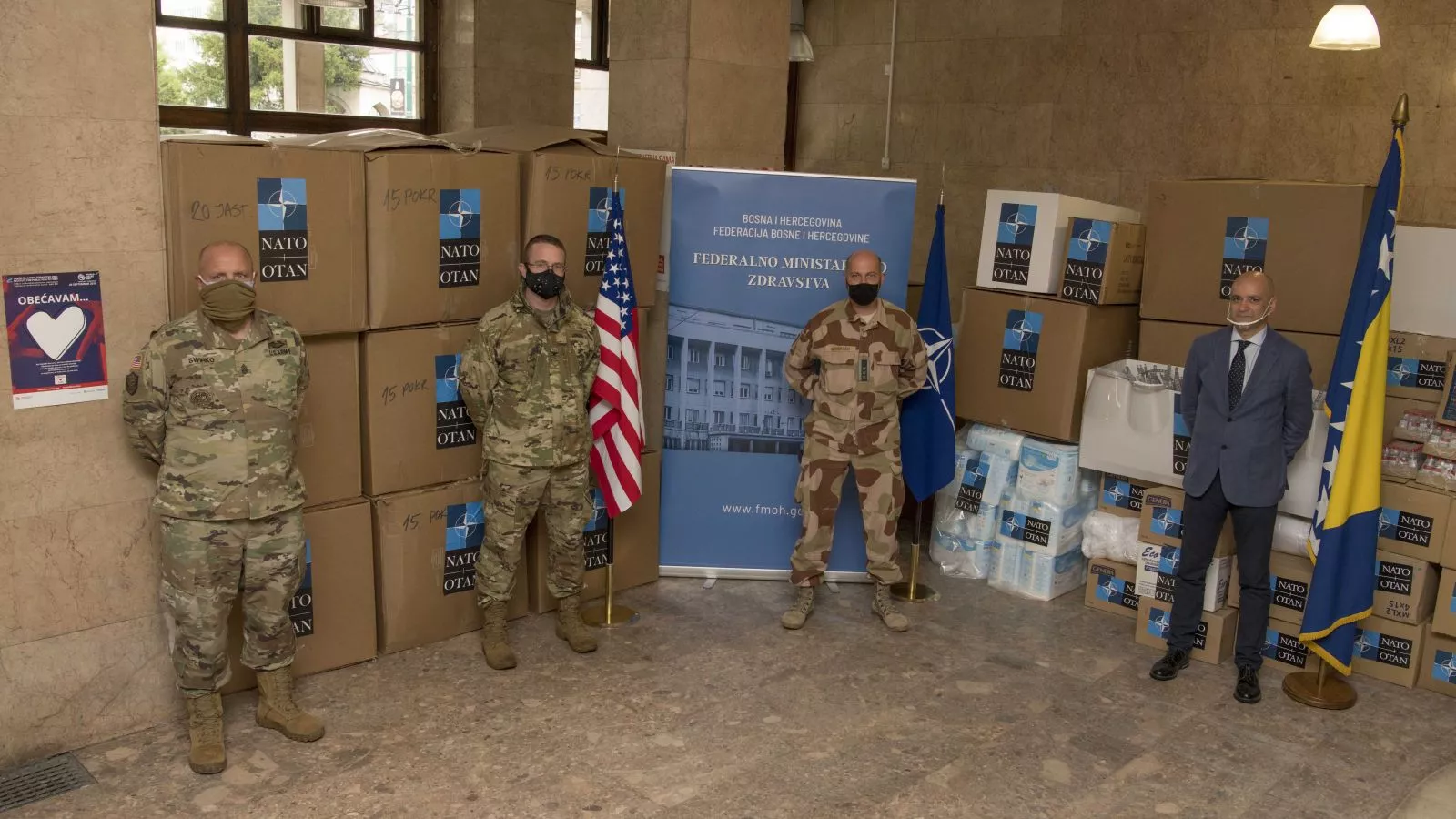 SARAJEVO, (Patria) - Kao dio opširnih nastojanja Saveznika u borbi protiv pandemije COVID-19, predstavnici vojske Sjedinjenih Američkih Država i NATO Štaba Sarajevo donirali su važne zalihe i medicinsku opremu građanima Bosne i Hercegovine.