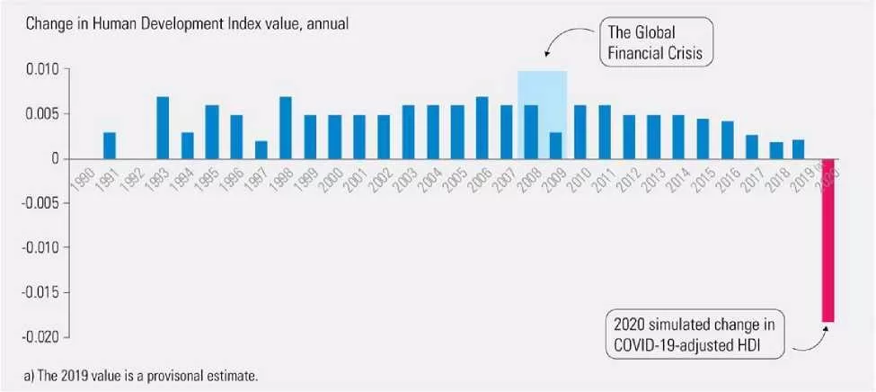 Očekuje se da će pad humanog razvoja biti znatno veći u zemljama u razvoju sa slabijim kapacitetima da se izbore sa socijalnim i ekonomskim padom kod pandemije u poređenju s bogatijim zemljama.