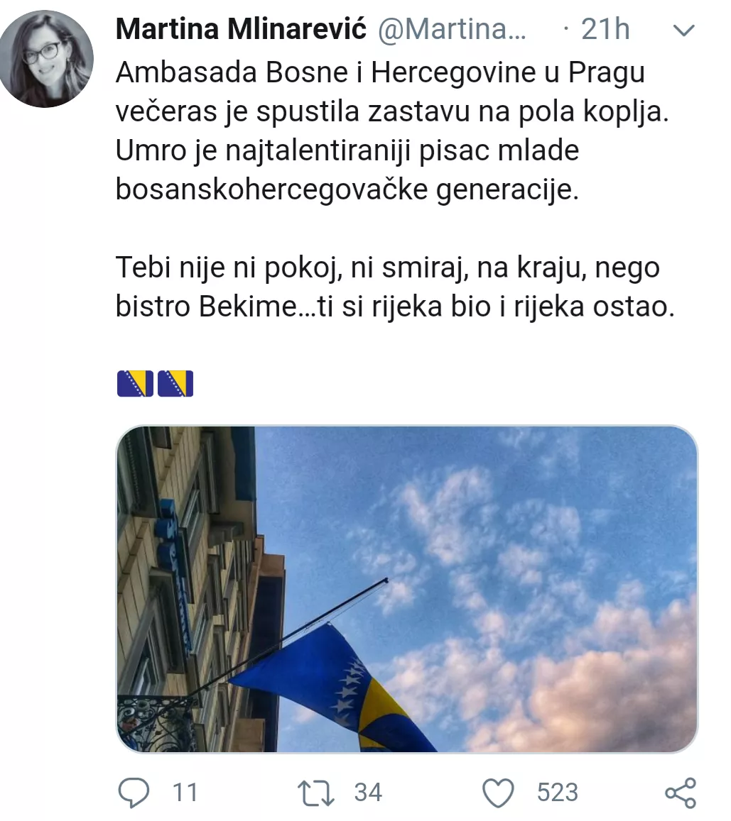 Ona je bila pogođena smrću istaknutog književnika Bekima Sejranovića te je htjela odati počast na taj način. S druge strane, razumljiva je i reakcija MVP BiH jer su tačno utvrđene procedure kada se može spustiti državna zastava. Mlinarević Sopta možda će i snositi određene posljedice zbog tog svog čina, ali ne treba zaboraviti da otkako je imenovana za ambasadoricu bila je na raspolaganju svim bh. državljanima a pogotovo u vrijeme pandemije. Učinila je nemoguće da se neki od njih vrate svojim kućama iz Češke i Slovačke i to ne treba zaboraviti. Nije tajna da ova književnica nema diplomatskog iskustva ali da ima želju da pomogne svim bh. državljanima i da im je na raspolaganju i ona i uposlenici Ambasade 24 sata dnevno to niko ne može osporiti. Na kraju krajeva kad ste u tuđoj zemlji onda vas i raduje da "imate nekog svog" a to bi upravo trebali biti naši ambasadori.