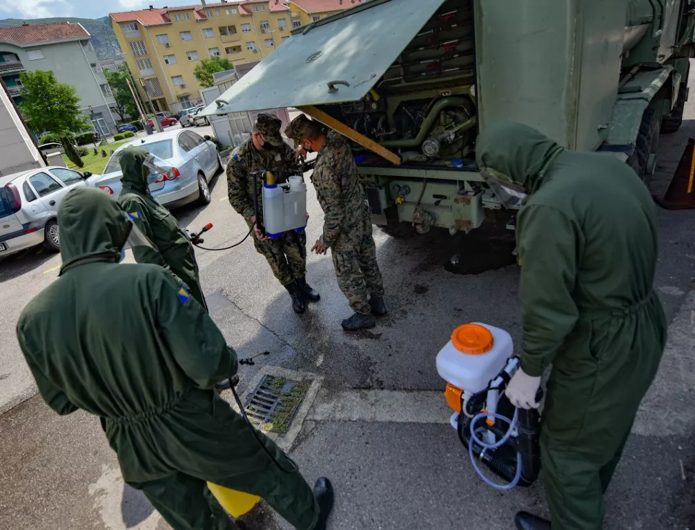 SARAJEVO, (Patria) - Na osnovu zahtjeva Civilne zaštite Hercegovačko-neretvanskog kantona, specijalistička jedinica za atomsko-biološko-hemijsku odbranu (ABHO) Oružanih snaga Bosne i Hercegovine u srijedu je obavila dezinfekciju prostora, vanjskih površina i objekata gdje su boravile ili borave zaražene osobe u općinama Čitluk, Jablanica, Konjic i gradu Mostaru.