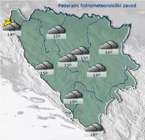 Slaba kiša ili lokalni pljuskovi su mogući ponegdje u centralnim i istočnim područjima Bosne.