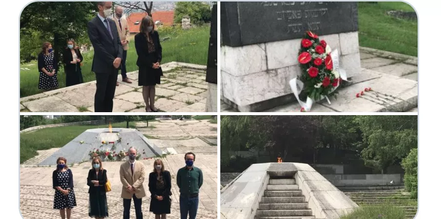 SARAJEVO, (Patria) - Šefica Misije OSCE-a u BiH ambasadorica Ketlin Kavalec (Kathleen), zajedno sa drugim članovima Misije OSCE-a i ambasadorom Nizozemske Reinoutom Vosom položila je danas cvijeće za žrtve Drugog svjetskog rata na Spomen-parku Vraca i Jevrejskom groblju.