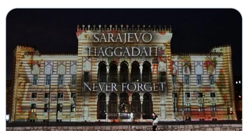 SARAJEVO, (Patria) - Projekcijom Sarajevske Hagade i porukom "Never forget" na sarajevskoj Vijećnici odata je počast svim nevinim žrtvama holokausta, genocida i ratnih zločina. Ispred Vijećnice bio je i gradonačelnik Sarajeva Abdulah Skaka koji je kazao da Sarajevska Hagada preživjela inkviziciju, holokaust i agresiju na Sarajevo i Bosnu i Hercegovinu.