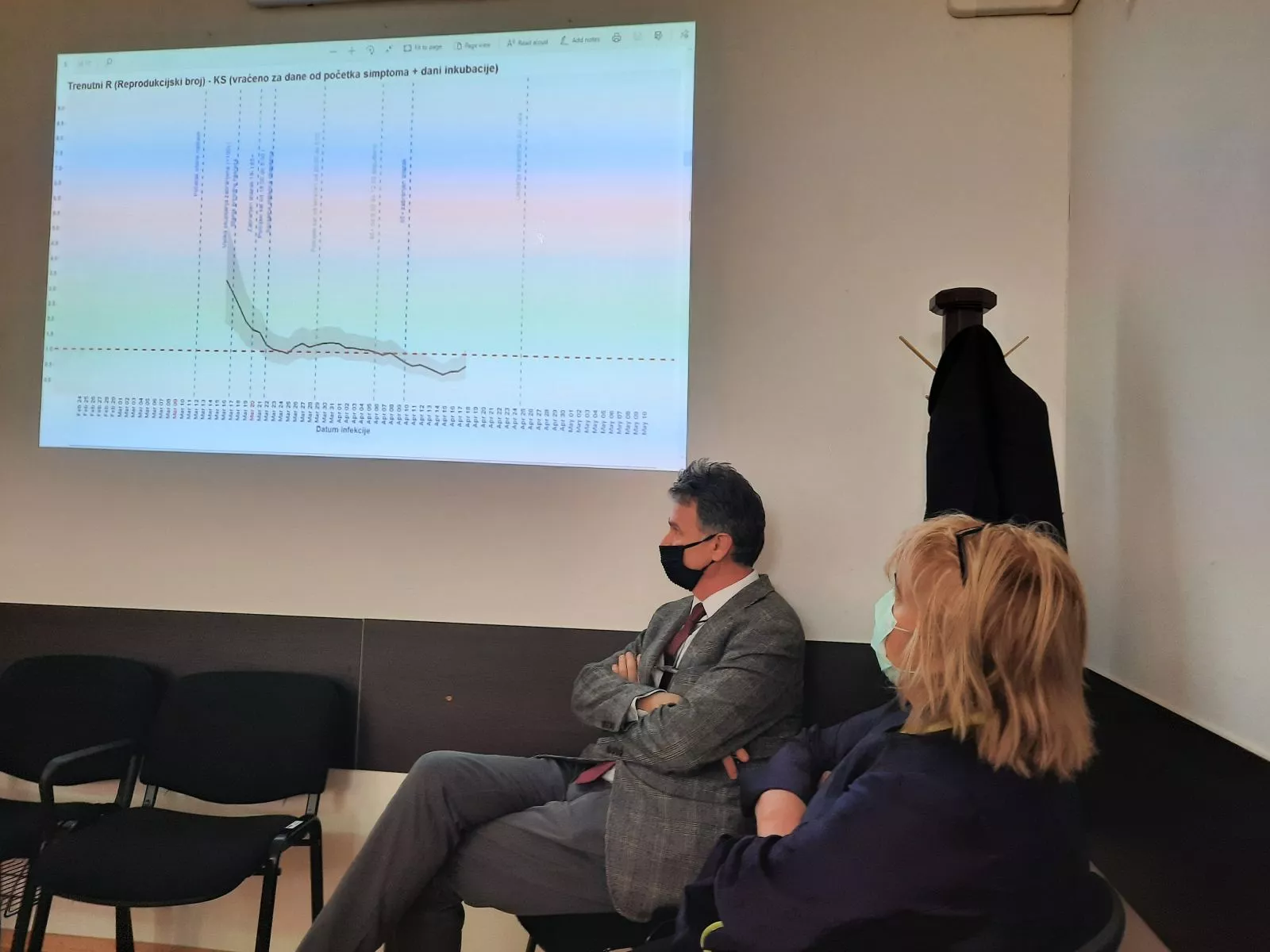 Članovi ekspertnog tima prof.dr.sci. Mirza Ponjavić i prof.dr.sci. Almir Karabegović, te doc.dr.med.sci. Fadila Serdarević i doc.dr.sci. Emin Tahirović informisali su prisutne o preciznom i detaljnom prostornom i vremenskom predstavljanju epidemioloških podataka vezanih za širenje novog koronavirusa u BiH, kao i o uticaju restriktivnih mjera na dinamiku širenja ove epidemije, ali i o promjenama Reprodukcijskog broja R – to jeste prosječnog broja sekundarno zaraženih od strane primarno zaraženog tokom njegovog infektivnog perioda i trajanja epidemije.