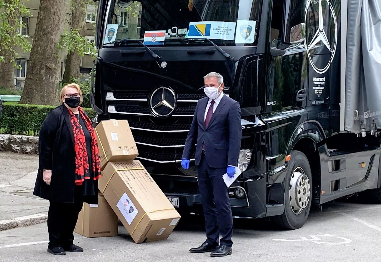 (Patria) - Zamjenica predsjedavajućeg Vijeća ministara i ministrica vanjskih poslova Bosne i Hercegovine dr Bisera Turković primila je danas, 11. maja 2020. godine, u sjedištu Ministarstva vanjskih poslova BiH u Sarajevu donaciju Republike Hrvatske Bosni i Hercegovini u humanitarnoj pomoći za borbu protiv pandemije COVID-19. Hrvatsku donaciju za borbu protiv koronavirusa BiH uručio je ambasador Republike Hrvatske Ivan Sabolić.