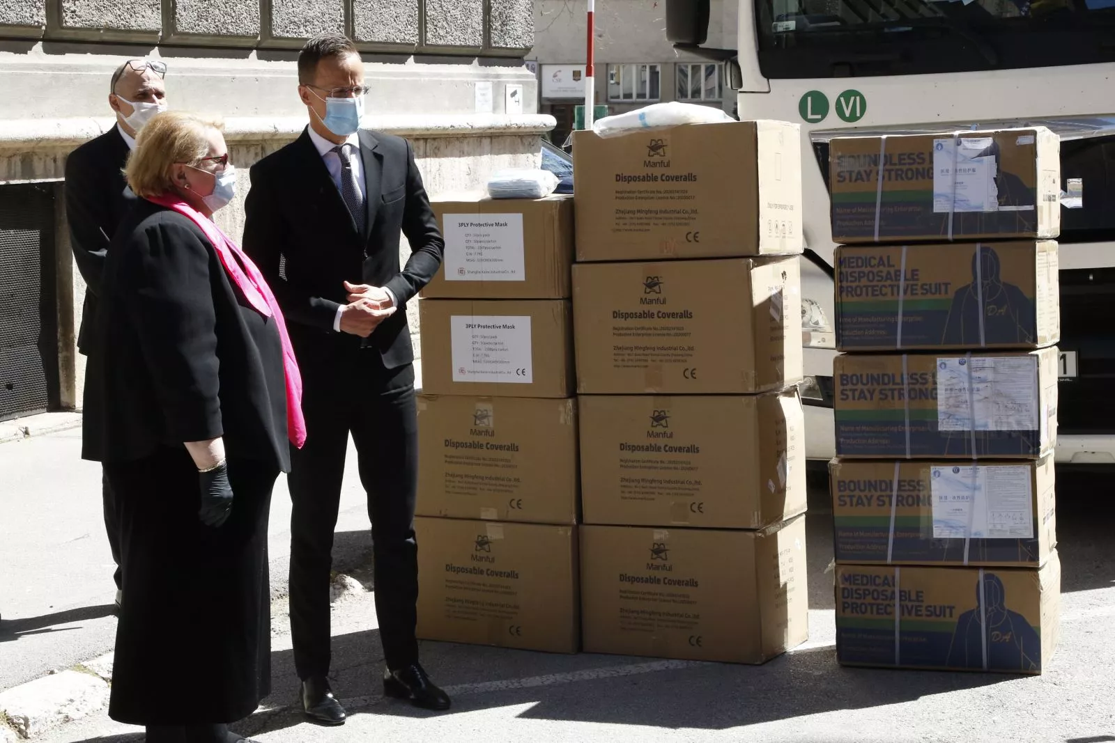 Ministar Szijjárta danas je ispred Ministarstva vanjskih poslova zajedno sa ministricom Turković dočekao kamion sa zaštitnom opremom.