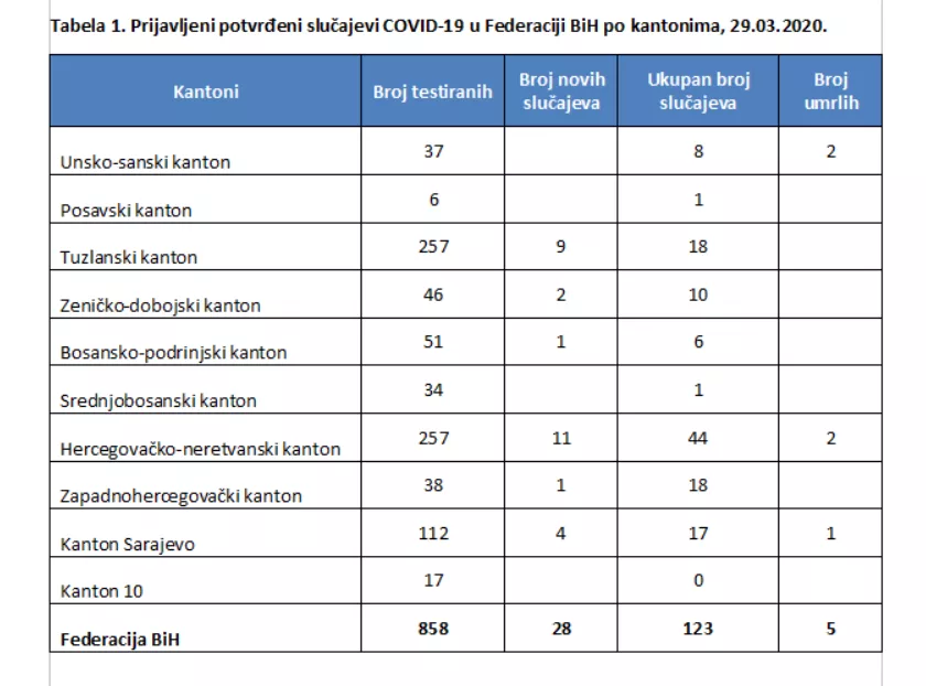 U FBiH je izvršeno 858 testiranja.