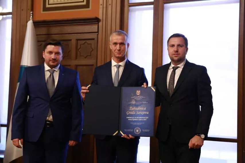 (Patria) - Tokom 35. sjednice Gradskog vijeća Grada Sarajeva, gradonačelnik Abdulah Skaka uručio je Zahvalnicu Grada Sarajeva Direkciji za koordinaciju policijskih tijela BiH za uspješnu