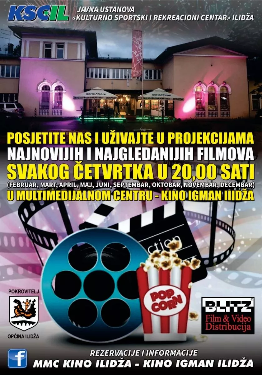 SARAJEVO, (Patria) - Najnoviji i najgledaniji filmovi moći će se pogledati u narednom periodu svakog četvrtka u mjesecu u Multimedijalnom centru - kino Igman Ilidža. Ovaj projekat sufinansira Općina Ilidža, a realizuje ga JU KSIRC llidža.