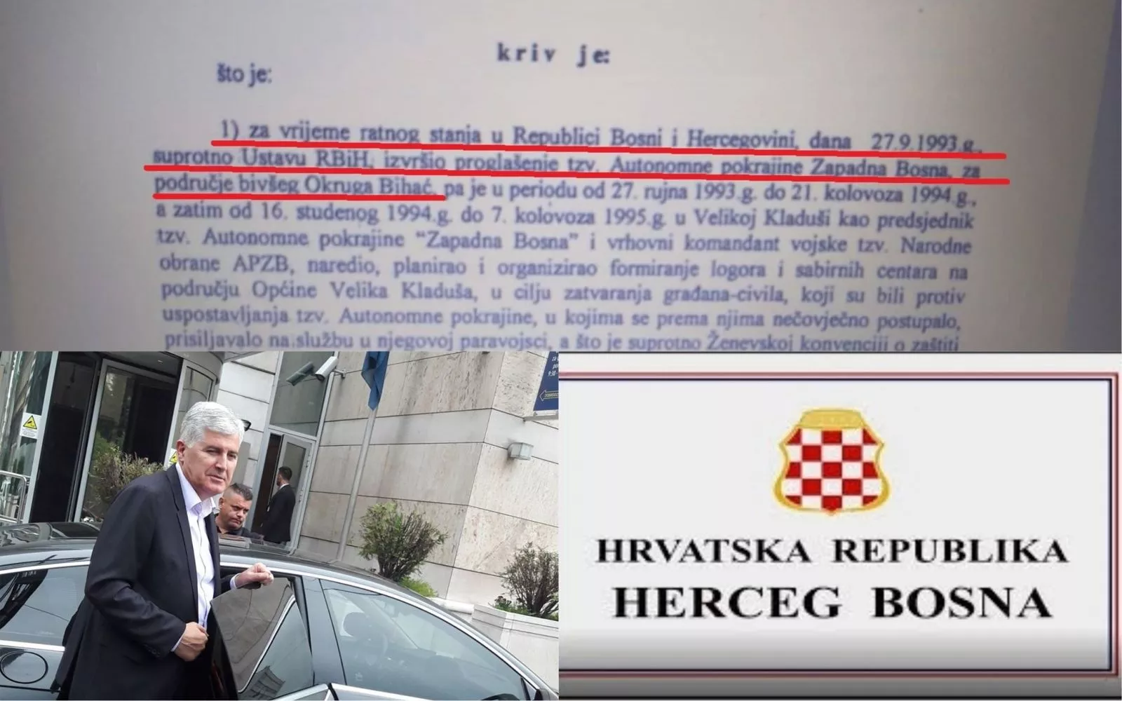 Kriv je što je za vrijeme ratnog stanja u Republici Bosni i Hercegovini, dana 27. septembra 1993. godine, suprotno Ustavu RBiH, izvršio proglašenje tzv. Autonomne pokrajine Zapadna Bosna za područje bivšeg Okruga Bihać.