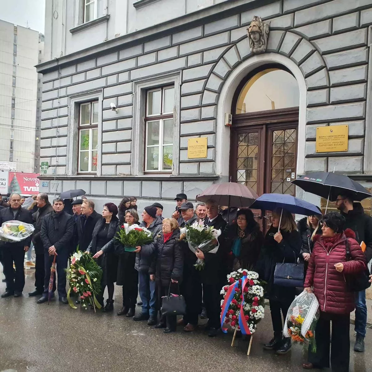 SARAJEVO, (Patria) - U znak sjećanja na osam ubijenih civila Sarajeva, delegacija Kantona Sarajevo položila je danas cvijeće na mjesto masakra ispred Osnovne škole “Safet – beg Bašagić”, na raskršću ulica Gimnazijska i Kulina bana.