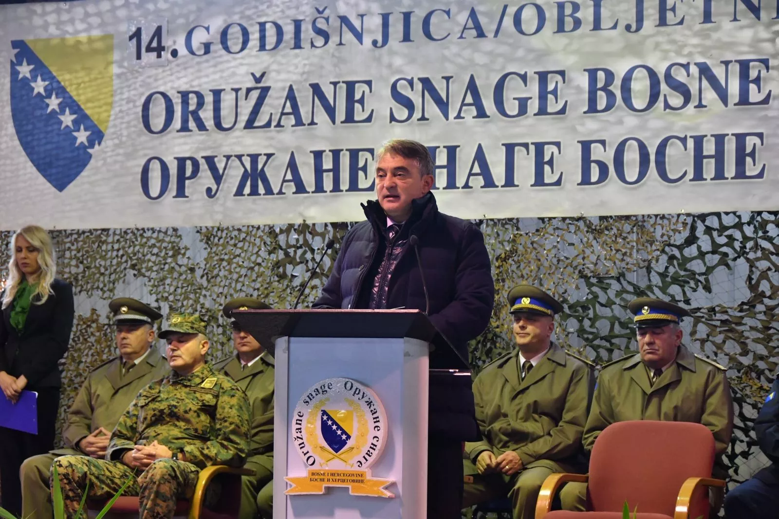 „Zadovoljstvo mi je da vam se, u ime Predsjedništva BiH, kao Vrhovnog zapovjedništva Oružanih snaga, i u lično ime, mogu obratiti danas, na 14. godišnjicu Oružanih snaga BiH.