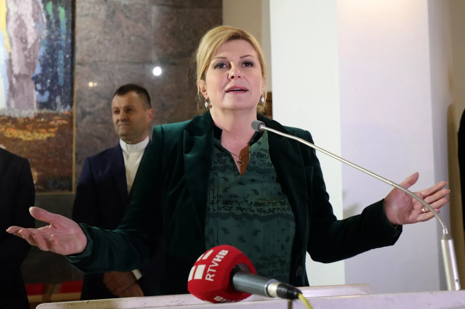 "Nema tog razgovora sa međunarodnim dužnosnicima gdje ne govorim o vama, Hrvatima, i gdje ne govorim o Bosni i Hercegovini, o potrebi da Hrvati moraju birati svoje političke predstavnike i biti jednakopravni u svakom pogledu s ostala dva naroda", kazala je Grabar - Kitarović.