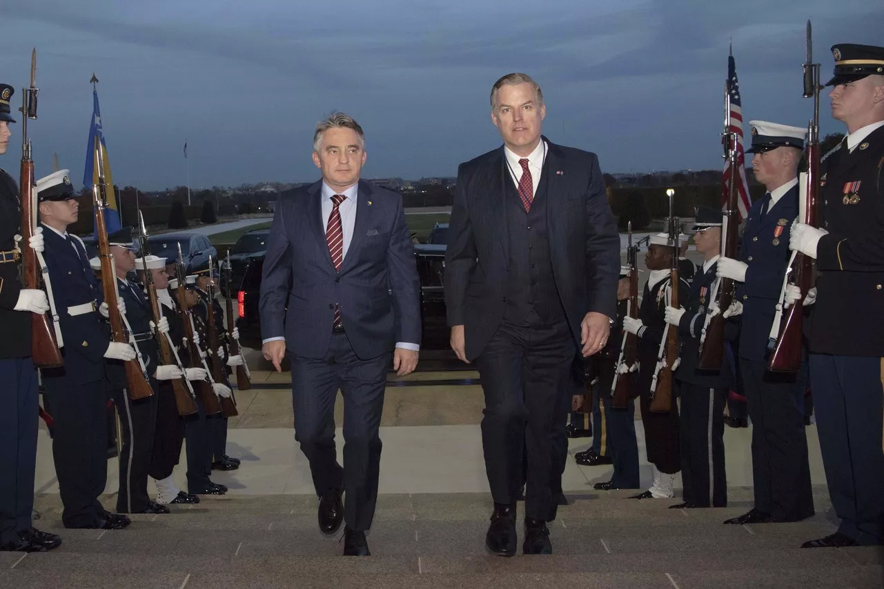 WASHINGTON, (Patria) - Predsjedavajući Predsjedništva Bosne i Hercegovine Željko Komšić i James Anderson, koji obavlja dužnost zamjenika pomoćnika ministra odbrane za politiku, sastali su se u Pentagonu, u sklopu Komšićeve prve službene posjete SAD-u, kao šefa države nakon općih izbora održanih prošle godine, saopćeno je iz Pentagona.