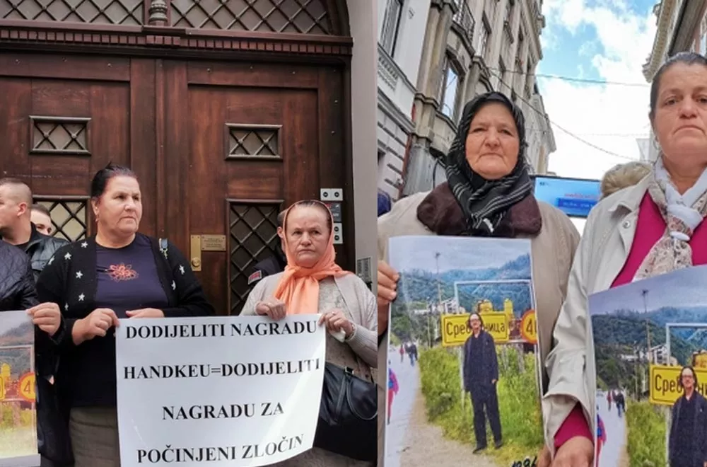 Povod mirnog okupljanja je odluka Komiteta Kraljevske švedske akademije nauka da Nobelovu nagradu za književnost dodijeli Peteru Handkeu, koji je javno opravdavao i podržavao zločince i