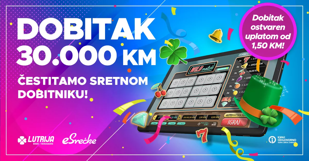 Poklon bonus Lutrije Bosne i Hercegovine posebno će ostati u sjećanju igraču iz Gradačca koji je u jutarnjim satima, 14. novembra, odigrao eSrećku Wild Match, uložio 1,50 KM i osvojio maksimalni dobitak na ovoj eSrećki u iznosu od 30.000,00 KM. Nakon odbijanja poreza na dobitak, igraču je na račun isplaćeno 27.000,00 KM.