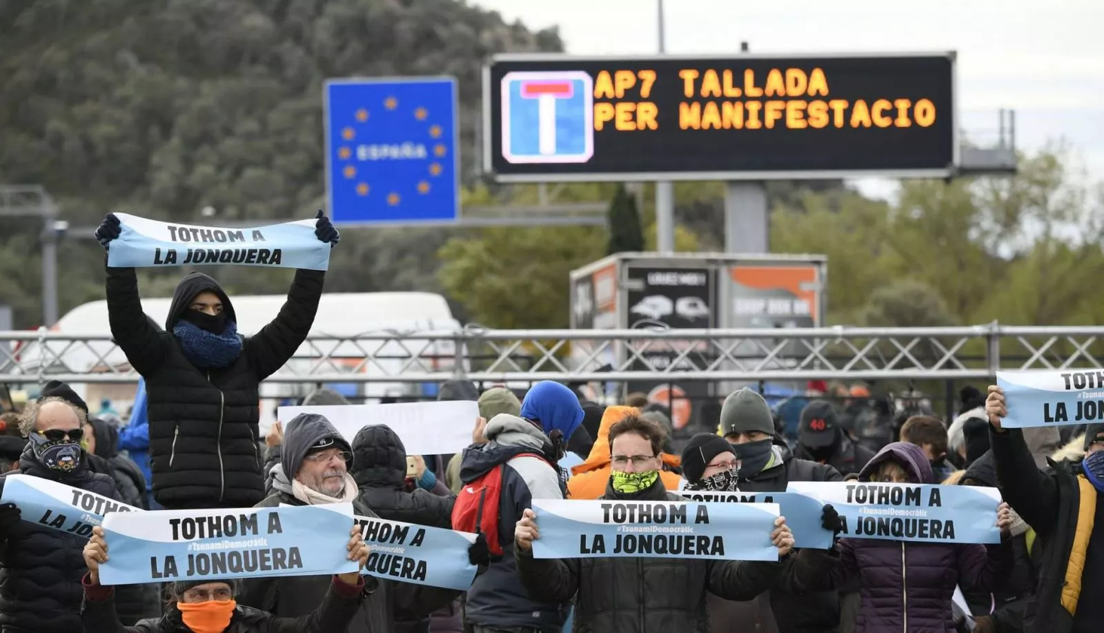 Na stotine demonstranata okupili su se oko prelaza La Jonquera u utorak rano ujutru gdje su ih dočekale katalonske regionalne snage Mossos d'Esquadra i naložile im da pomejre svoja vozila i napuste područje.