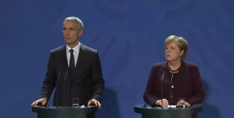 "Francuski predsjednik je upotrijebio drastične riječi. Kad je u pitanju saradnja s NATO-m, to nije moje stajalište. Takav udarac nije bio neophodan", izjavila je Merkel na zajedničkom obraćanju sa generalnim sekretarom NATO saveza Jensom Stoltenbergom u Berlinu.