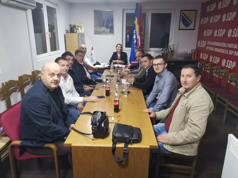 SARAJEVO, (Patria) - Shodno zaključku Glavnog odbora SDP BIH donesenom na posljednjoj sjednici održanoj 26. oktobra 2019. godine, jučer je u prostorijama GO SDP BIH Živinice održan radni sastanak delegacije SDP BIH u sastavu Elvir Karajbić, generalni sekretar, Dževad Hadžić, predsjednik KO SDP BIH Tuzla, Elvir Mahmuzić, sekretar KO SDP BIH Tuzla i Amila