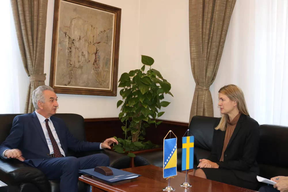 (Patria) - Švedska je najveći pojedinačni donator Bosne i Hercegovine, sa brojnim razvojnim projektima u našoj zemlji, istaknuto je na današnjem sastanku ministra spoljne trgovine i ekonomskih odnosa Mirka Šarovića sa novoimenovanim ambasadorom Švedske u BiH Johanom Stromkvist (Johanna Stromquist).