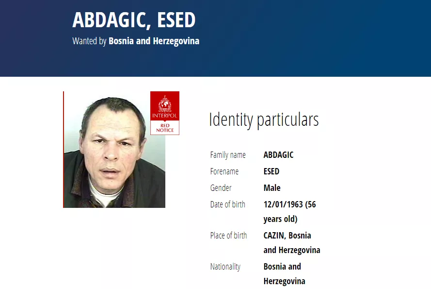 Interpol je raspisao potjernicu za Esedom Abdagićem, optuženim za ubistvo ratnog zarobljenika počinjeno 1993. godine u Bihaću, saznaje Balkanska istraživačka mreža Bosne i Hercegovine (BIRN BiH).