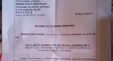 U pozivu nije navedeno ko ga poziva na svjedočenje Sud, Tužilaštvo ili, pak odbrana, ali nezvanično Patria saznaje da bi Orić trebao svjedočiti za odbranu!?