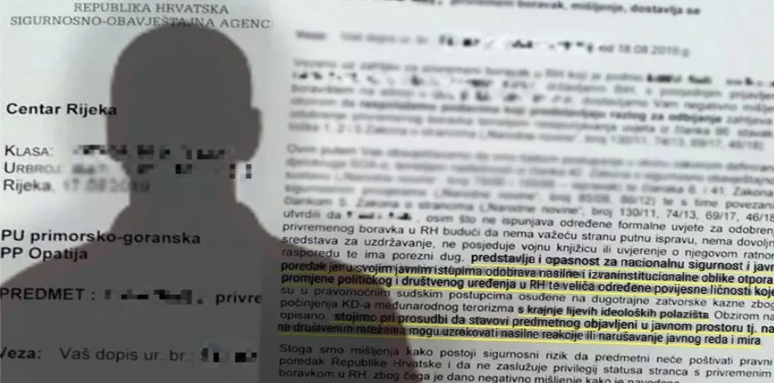 (Patria) - Predstavlja opasnost za nacionalnu sigurnost i javni poredak jer u svojim javnim istupima odobrava nasilne i izvaninstitucionalne oblike otpora i promjene političkog društvenog uređenja u RH, te veliča određene povijesne ličnosti koje su u pravomoćnim sudskim postupcima osuđene na dugotrajne zatvorske kazne zbog počinjenja KD (kaznenih djela op. aut.) međunarodnog terorizma s krajnje lijevih ideoloških polazišta. Obzirom na opisano, stojimo pri prosudbi da stavovi predmetnog objavljeni u javnom prostoru tj. na društvenim mrežama mogu uzrokovati nasilne reakcije ili narušavanje javnog reda i mira", stoji u mišljenju Sigurnosno-obavještajne agencije kojim se odbija produljenje privremenog boravka u Hrvatskoj državljaninu Bosne i Hercegovine, piše index.hr, prenosi Patria.