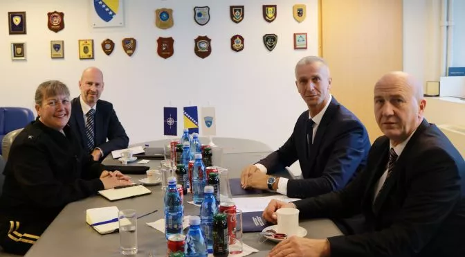 SARAJEVO, (Patria) - Direktor Direkcije za koordinaciju policijskih tijela BiH Mirsad Vilić sa svojim zamjenikom Ivicom Bošnjakom, primio je danas u radnu posjetu komandanticu NATO Štaba