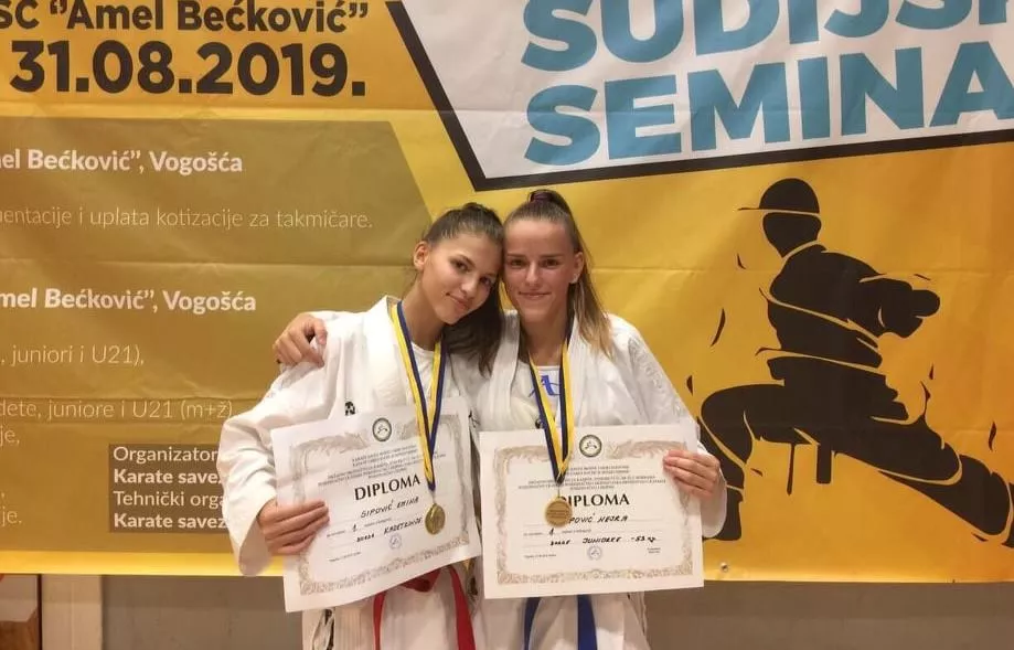 (Patria) - Takmičarke karate Kluba Ippon iz Sarajeva, sestre i reprezentativke BiH, Nejra i Emina Sipović su prvakinje BiH u juniorskoj i kadetskoj konkurenciji. One su na Državnom prvenstvu za kadete, juniore i mlade osvojile zlatne medalje, te se obzirom na dosadašnje rezultate plasirale na predstojeće 11. Svjetsko prvenstvo, koje se krajem mjeseca oktobra održava u Santiago se Chileu u Čileu.